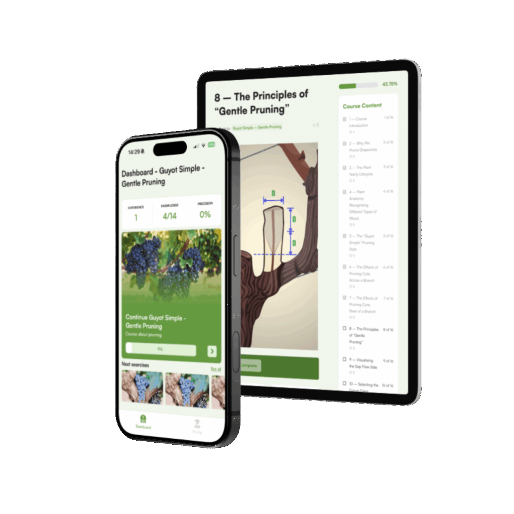 While the AI/AR glasses remain a key R&D track, we’ve shifted our primary focus to the Digital Vine Pruning Training platform, bite-sized videos and interactive exercises, including cut simulations, that teach each pruning method and let managers verify readiness.